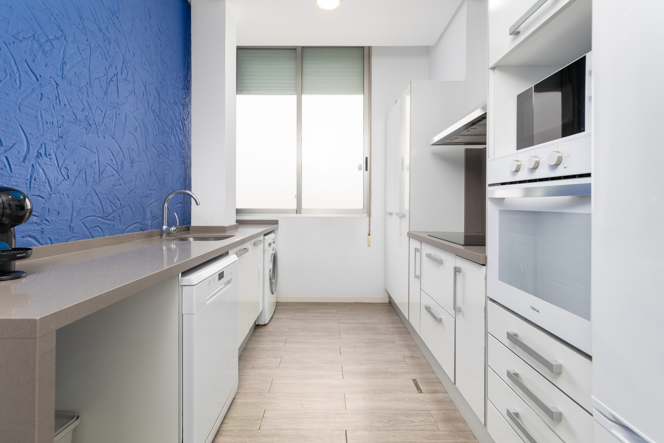 - Cocina independiente completamente equipada, con toda clase de electrodomésticos y aparatos de cocina: lavavajillas, lavadora, microondas, horno, frigorífico/congelador, cafetera dolçe gusto, hervidor, tostadora y batidora.