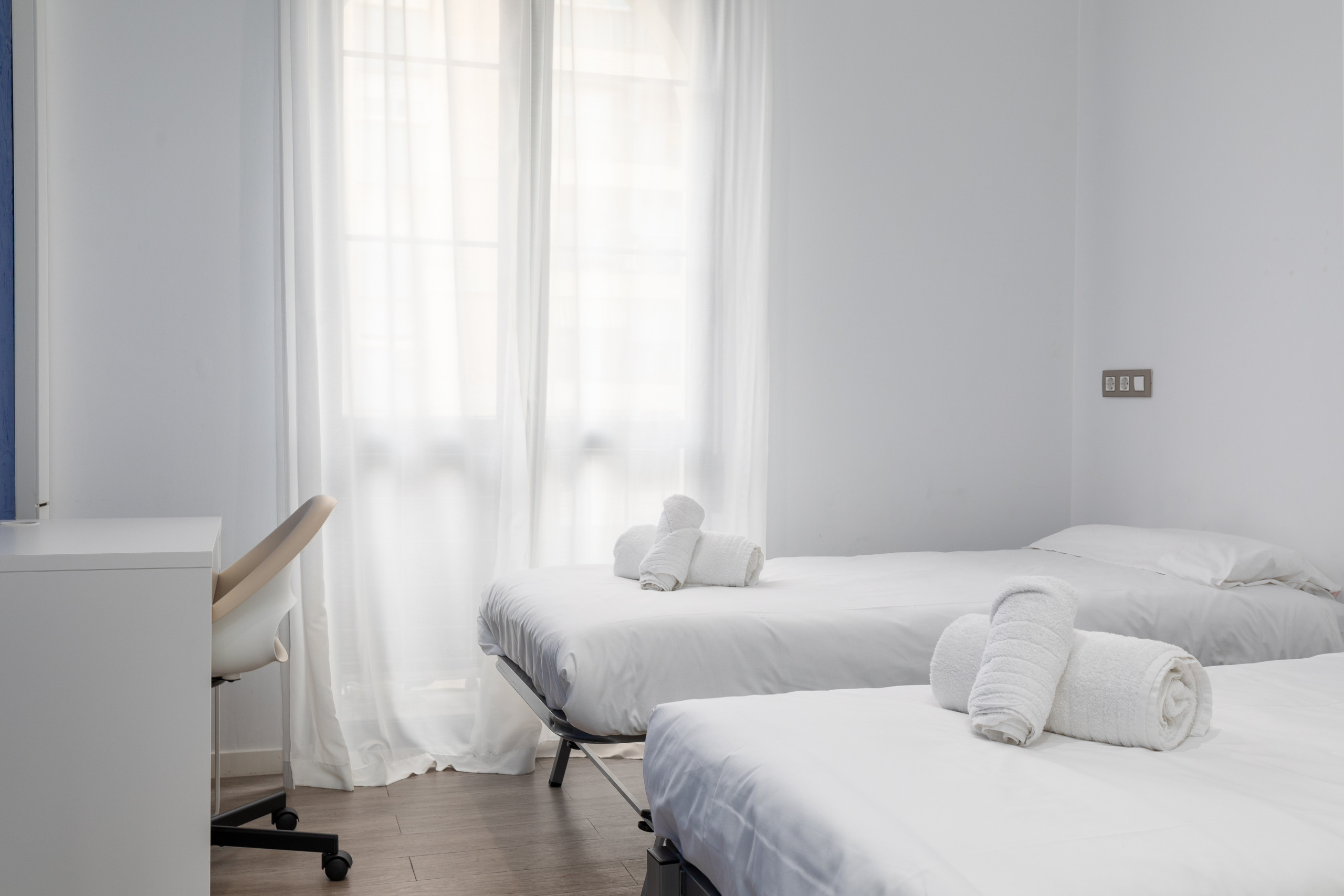 - Espaciosa segunda habitación con dos camas individuales de 90x190 cm, amplio armario, escritorio y silla.