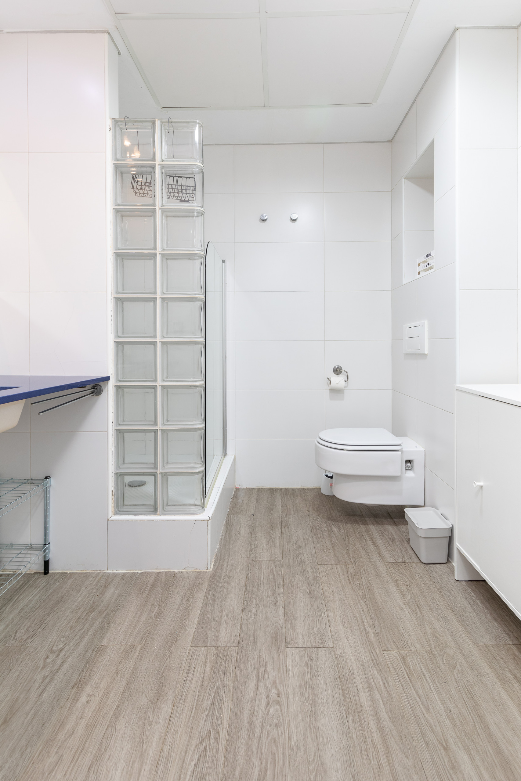 - Baño de diseño equipado con ducha, wc y lavabo.