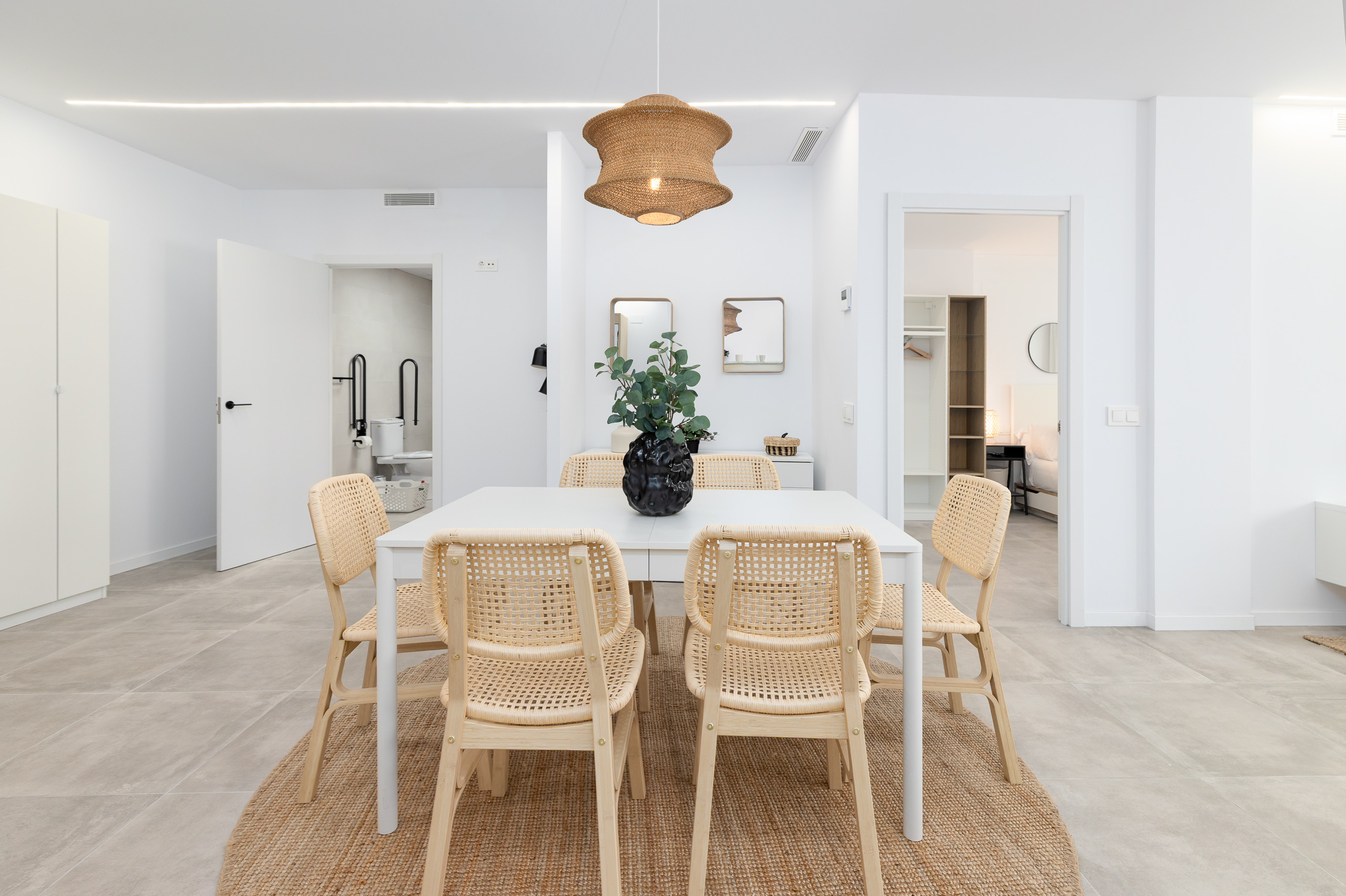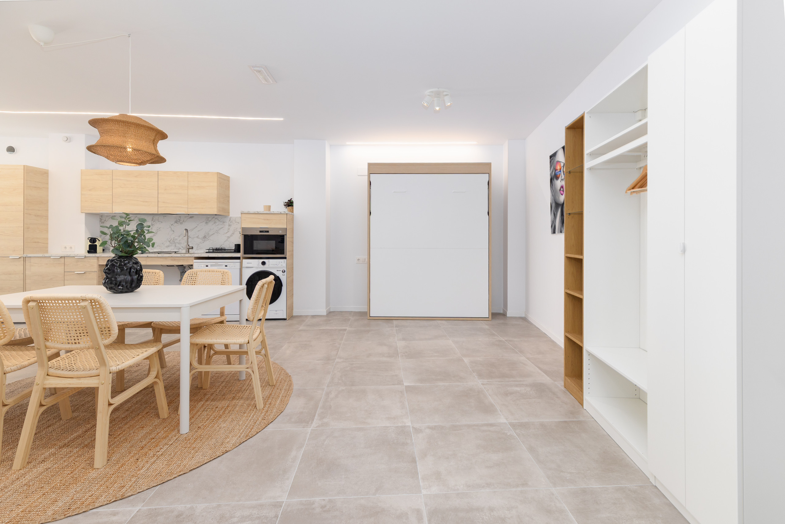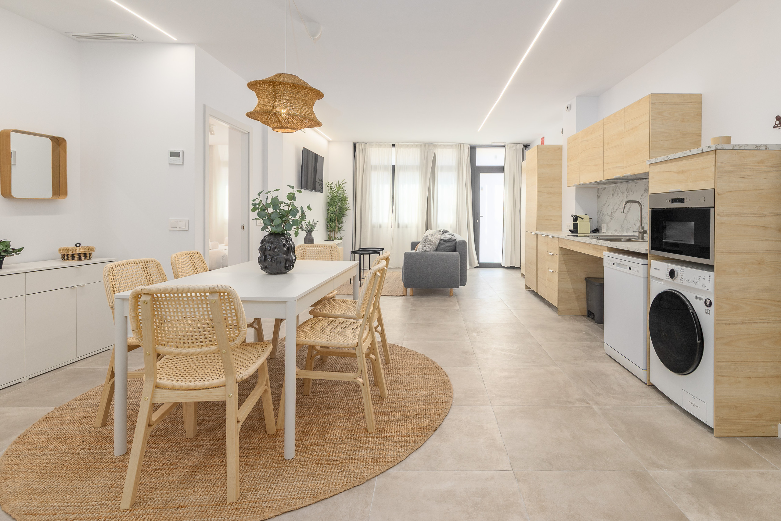 Apartamento moderno, espacioso y luminoso situado en la planta baja de un edificio en el casco urbano del Cabanyal. Se encuentra en una zona perfectamente comunicada, ideal tanto para quienes desean disfrutar de la playa de la Malvarrosa (a unos 2 km) como para quienes necesitan desplazarse rápidamente por la ciudad. El alojamiento combina la esencia del barrio marinero con un equipamiento completo, actual y mucho espacio vital.