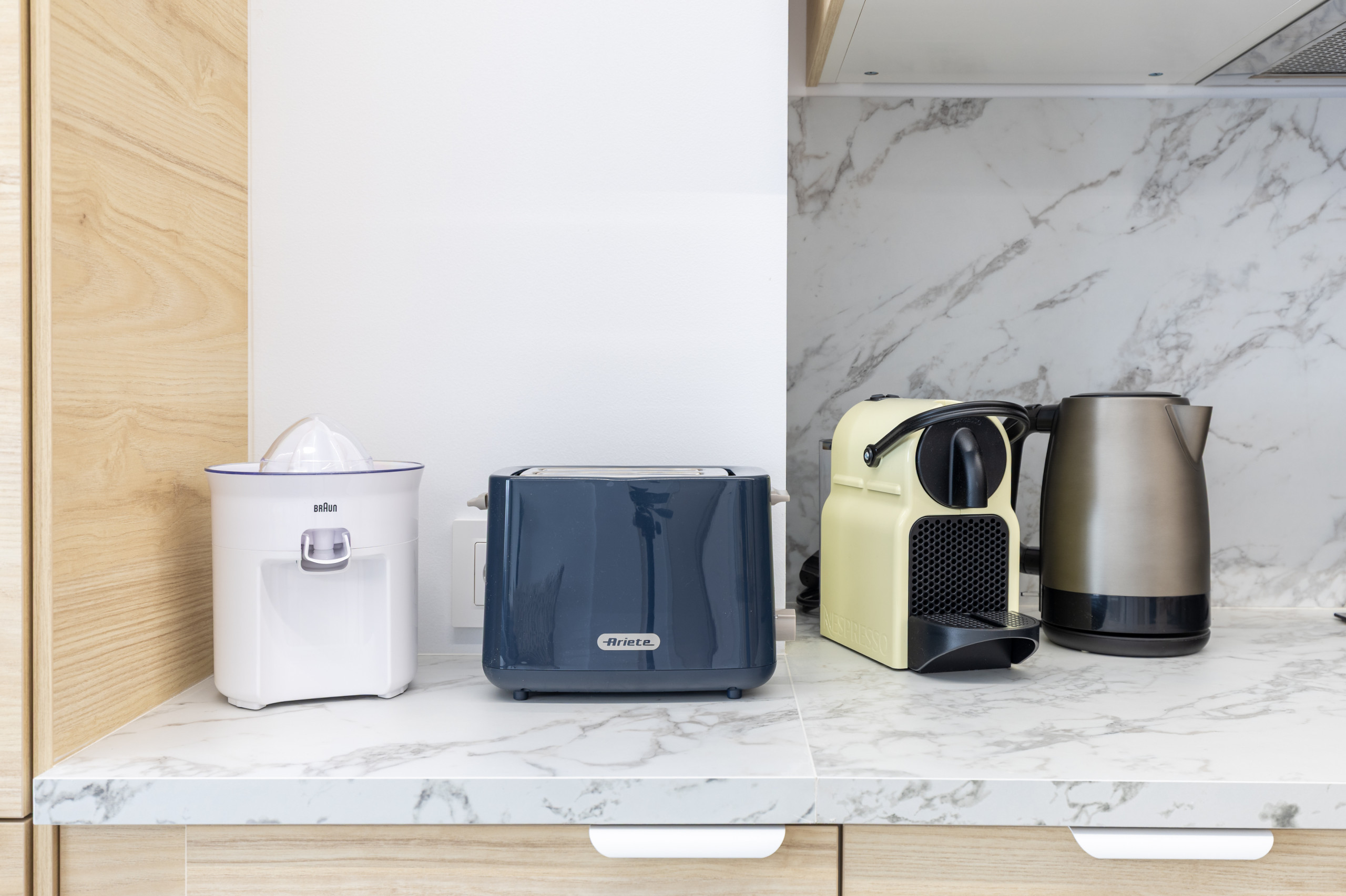 - Práctica cocina totalmente equipada, con lavavajillas, lavadora-secadora, microondas-horno, vitrocerámica, frigorífico/congelador, cafetera Nespresso, tostadora, hervidor de té…
