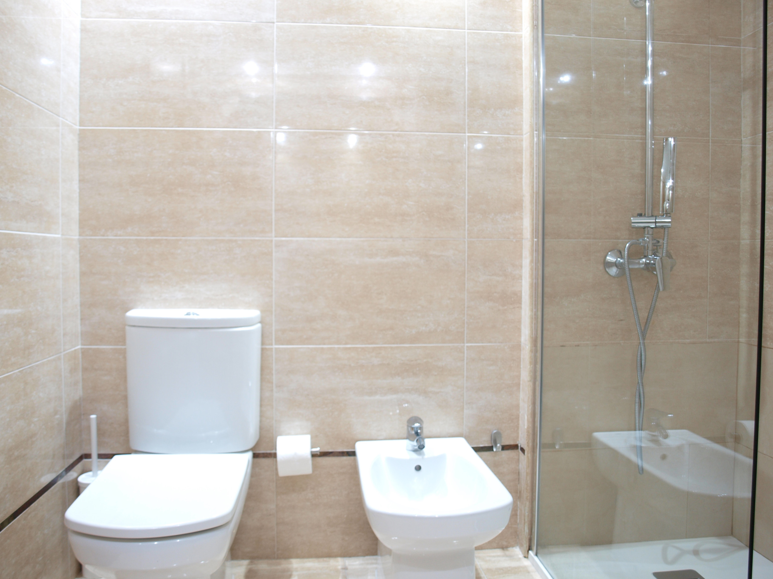 - Bathroom with wash basin and mirror, wc, bidet and shower.