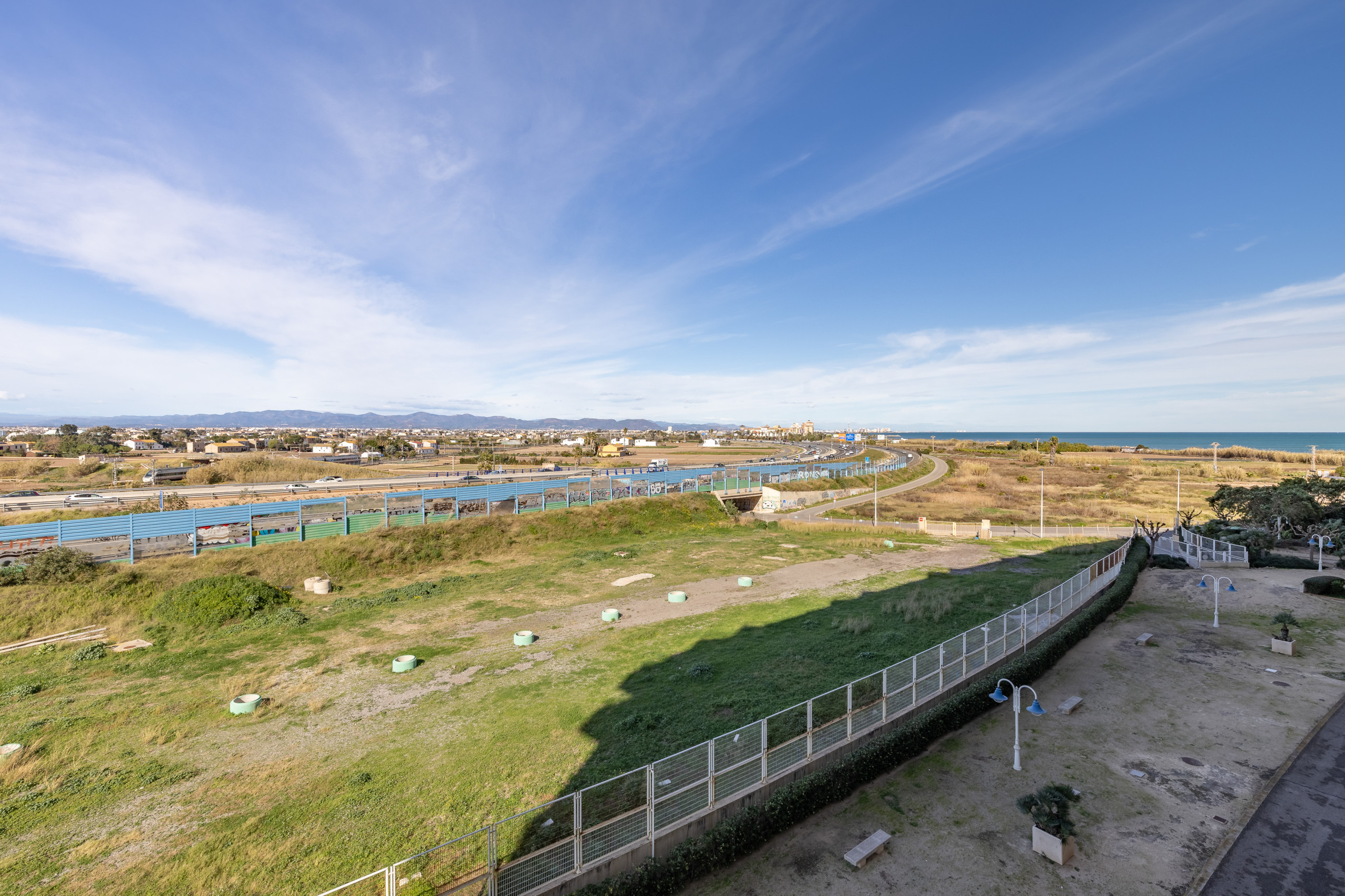Comfortable apartment ideal for families, located on the first line of the sea and with pleasant views of the Valencian orchard. You can enjoy long walks along the wide seafront promenade, beach bars, restaurants, cafés and nearby supermarkets. The perfect combination between city and beach!