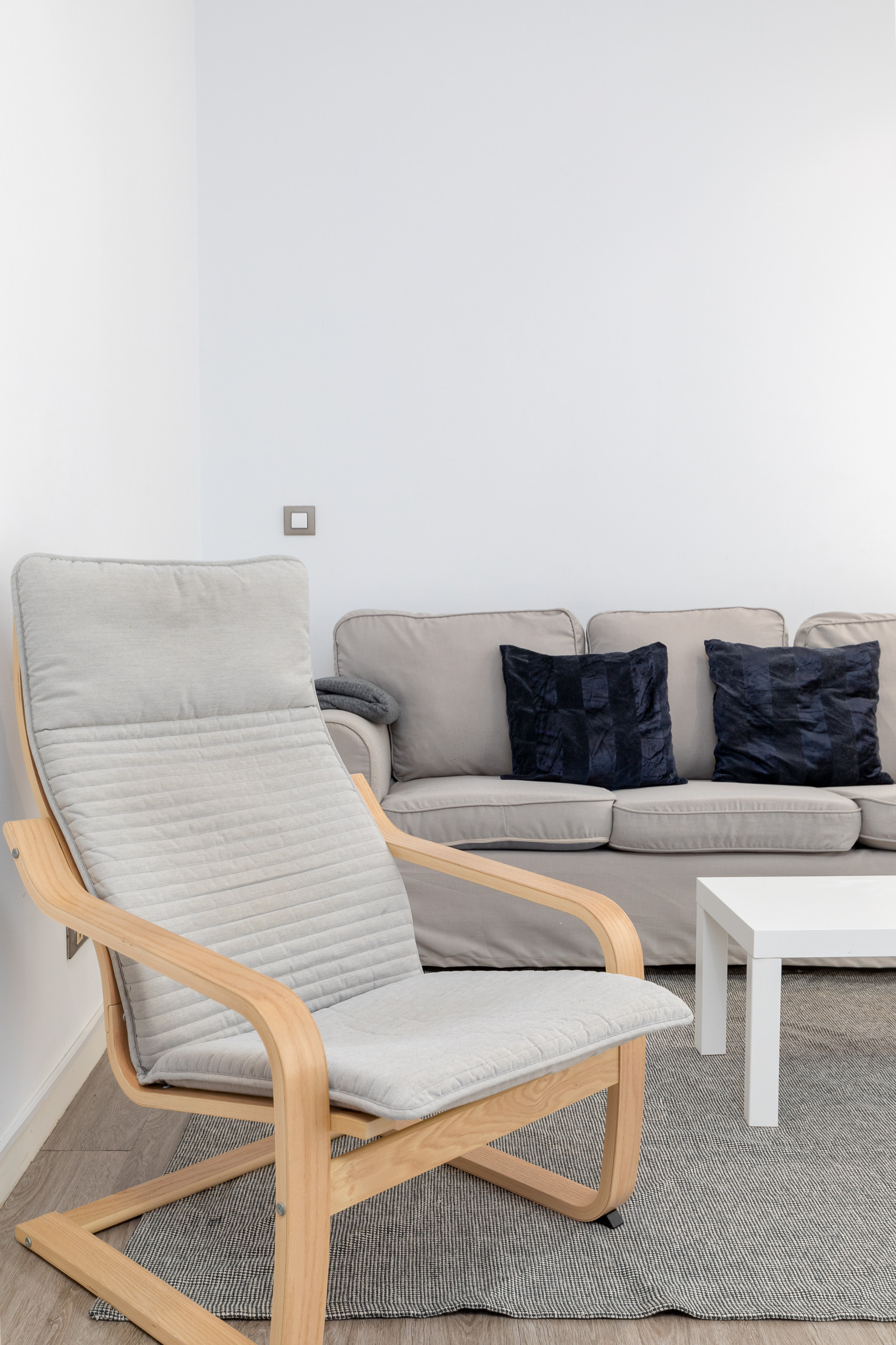 - Comfortable and bright living room with sofa, armchair, HD TV, dining table for four people and access to a balcony.