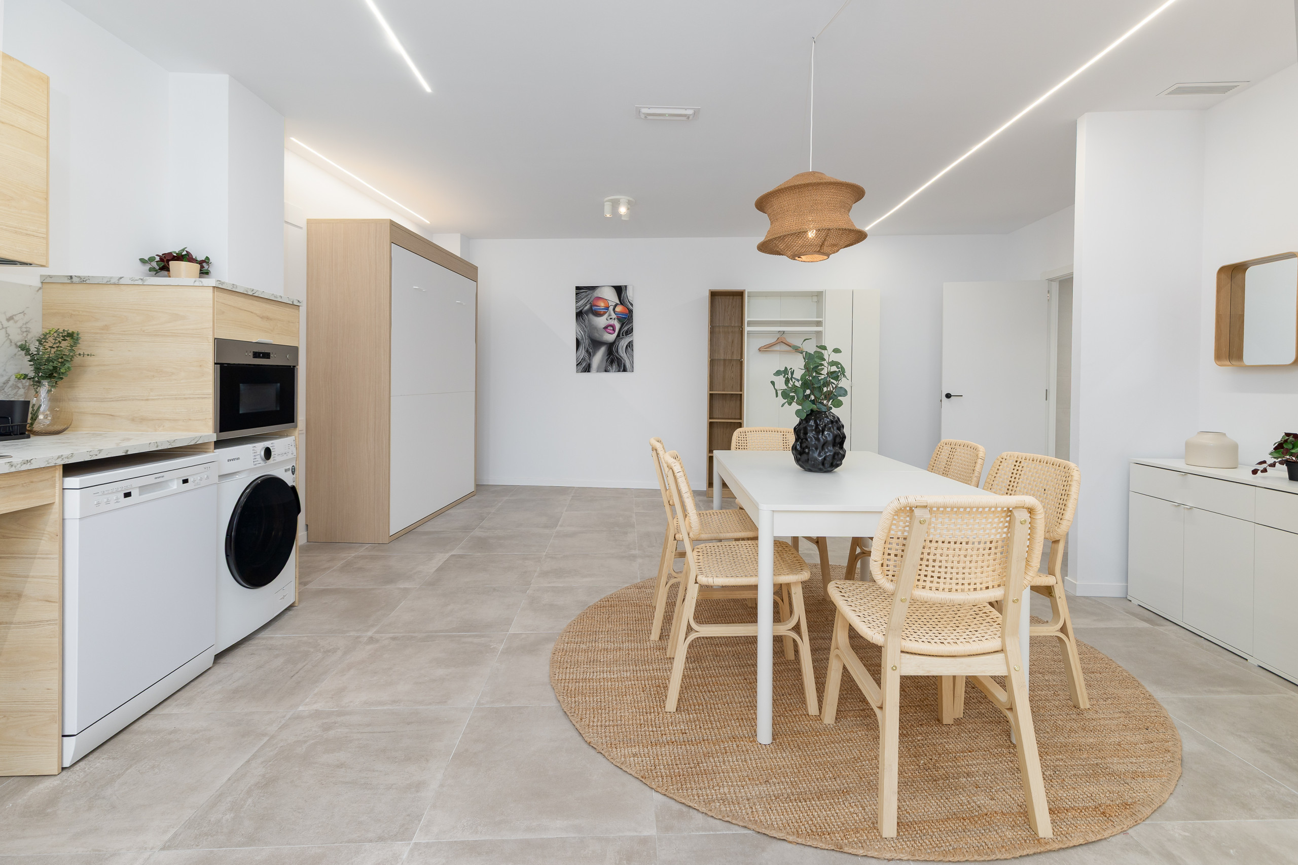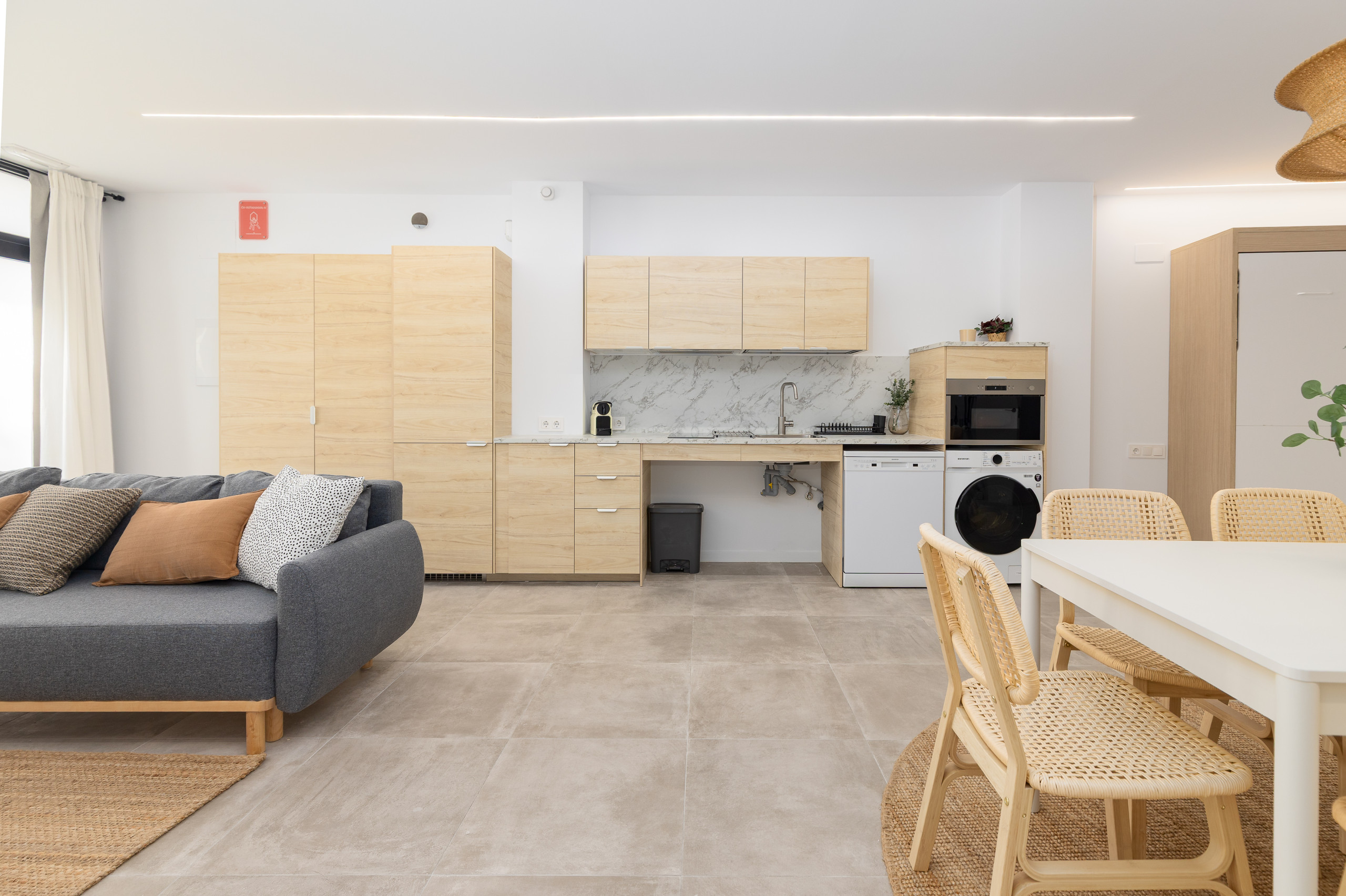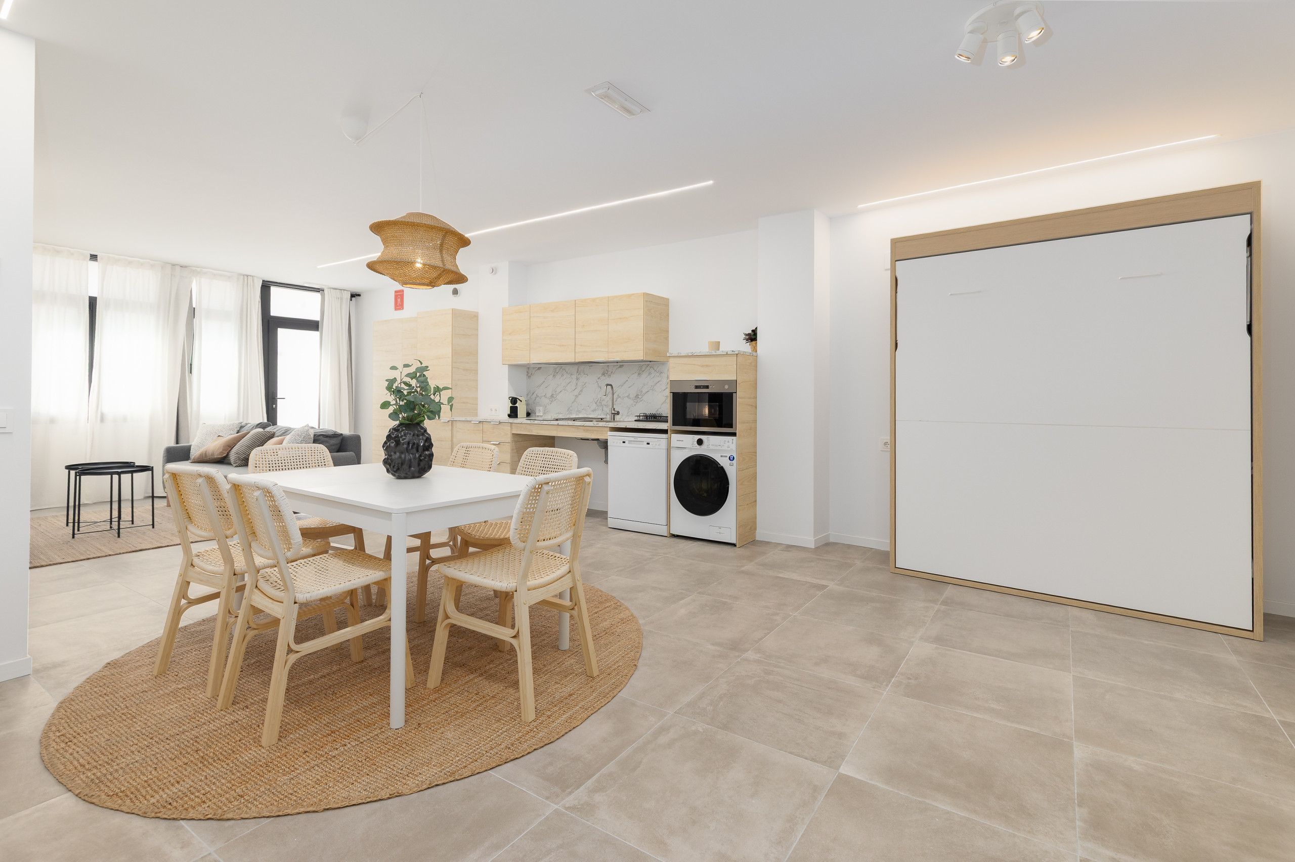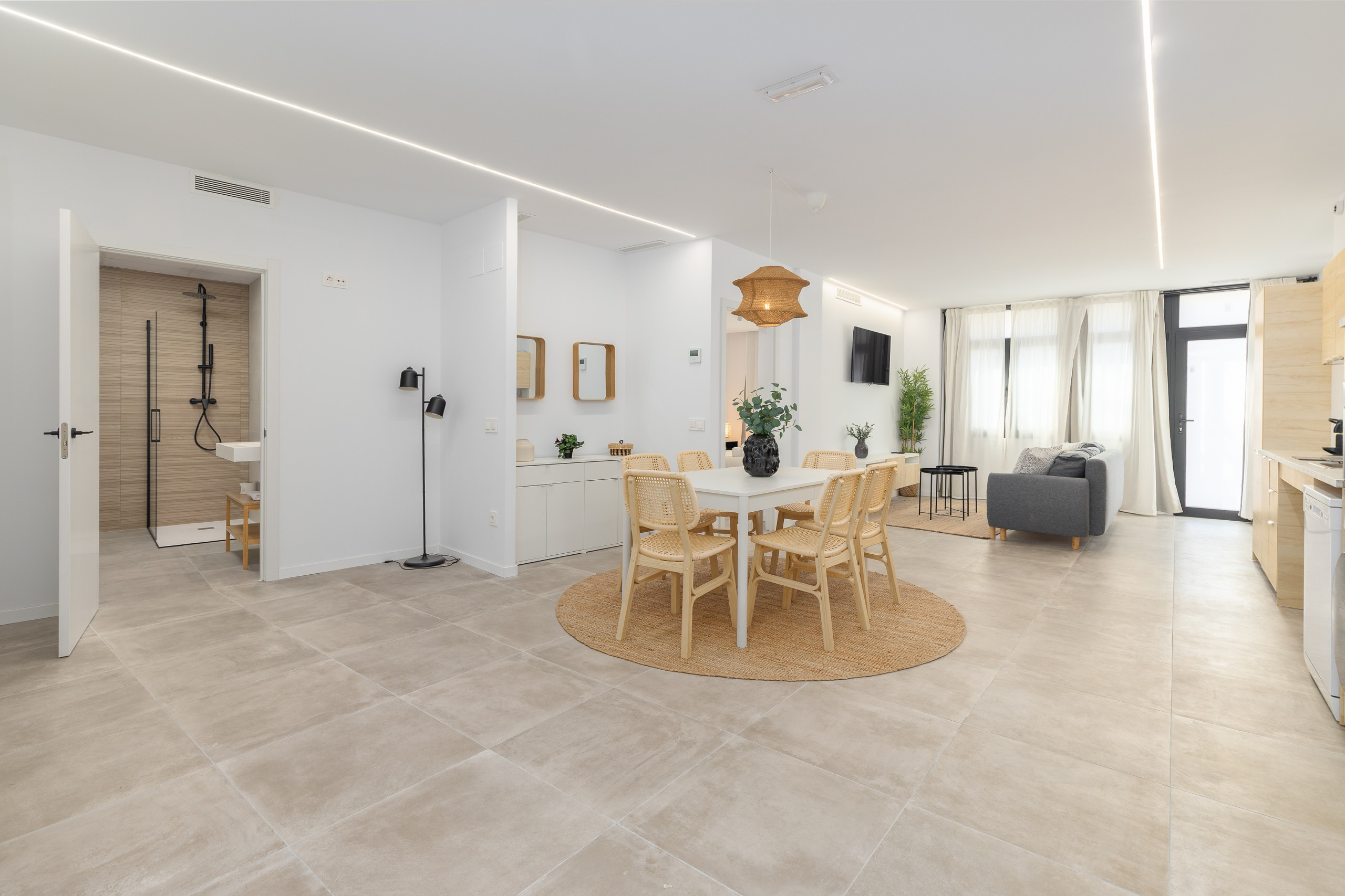 Modern, spacious and bright apartment located on the ground floor of a building in the urban centre of Cabanyal. It is situated in a perfectly connected area, ideal both for those wishing to enjoy Malvarrosa beach (about 2 km away) and for those needing to move quickly around the city. The accommodation combines the essence of the maritime neighbourhood with complete, up-to-date facilities and plenty of living space.