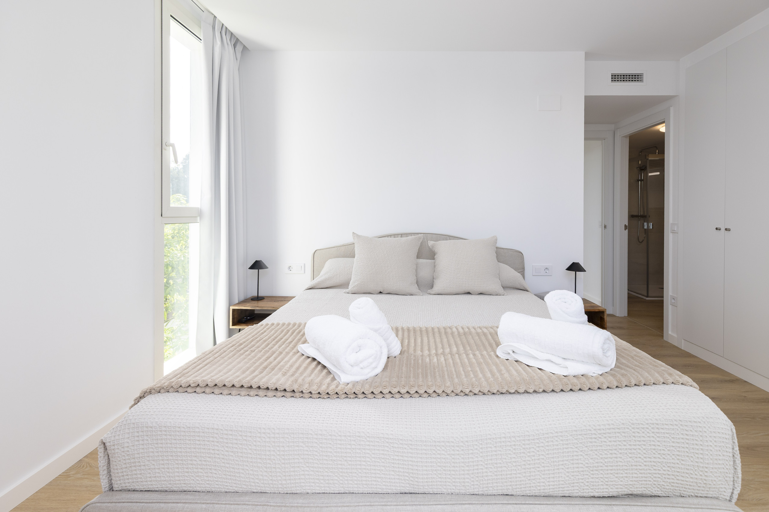 - Very bright main bedroom, with a 150x190 cm double bed, HD Smart TV and en-suite bathroom with washbasin, mirror, WC and shower with screen.
