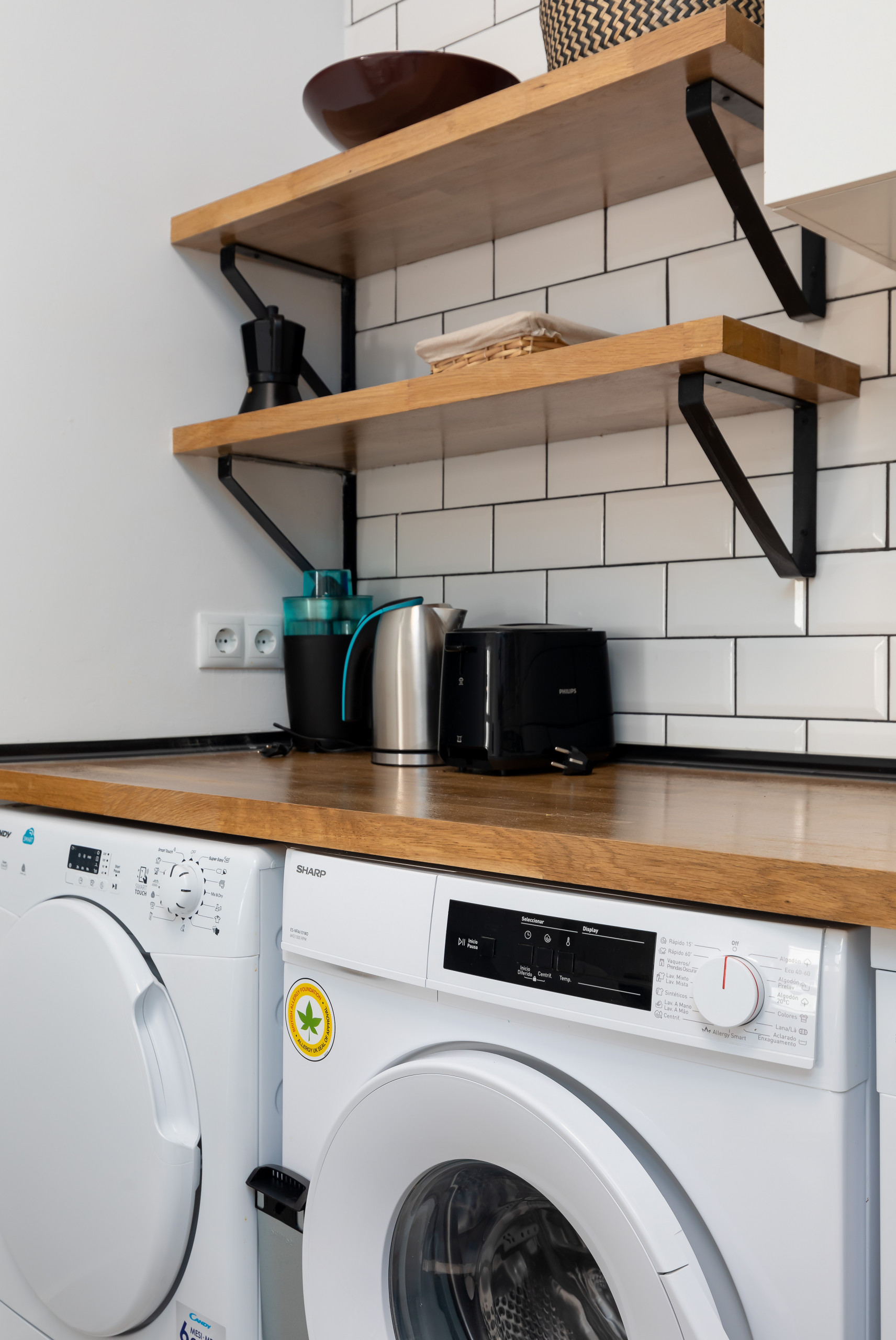 The accommodation is equipped with the following items: washing machine, dryer, iron, internet (Wi-Fi), hair dryer, heat pump, air conditioning in the living room, radio.