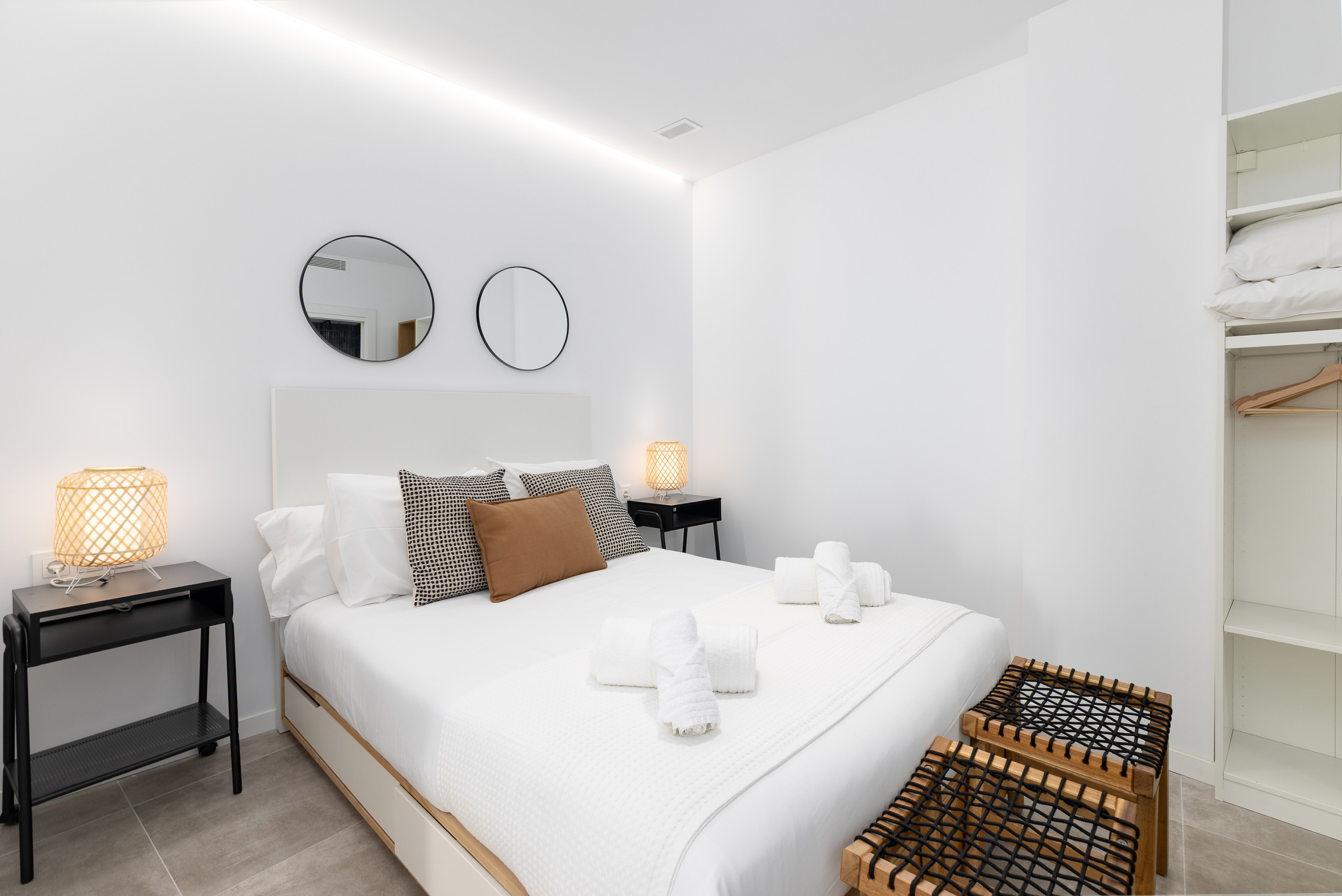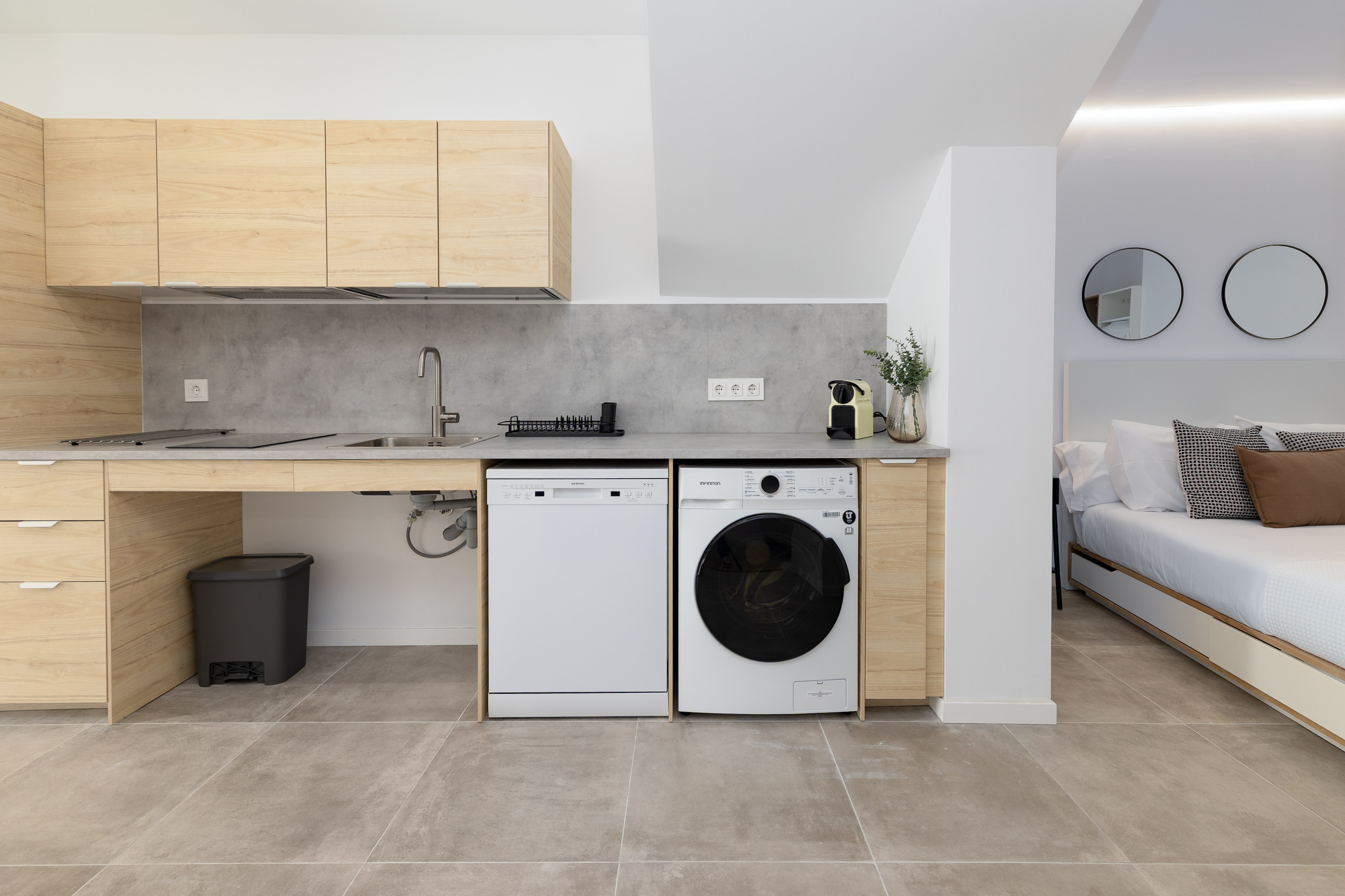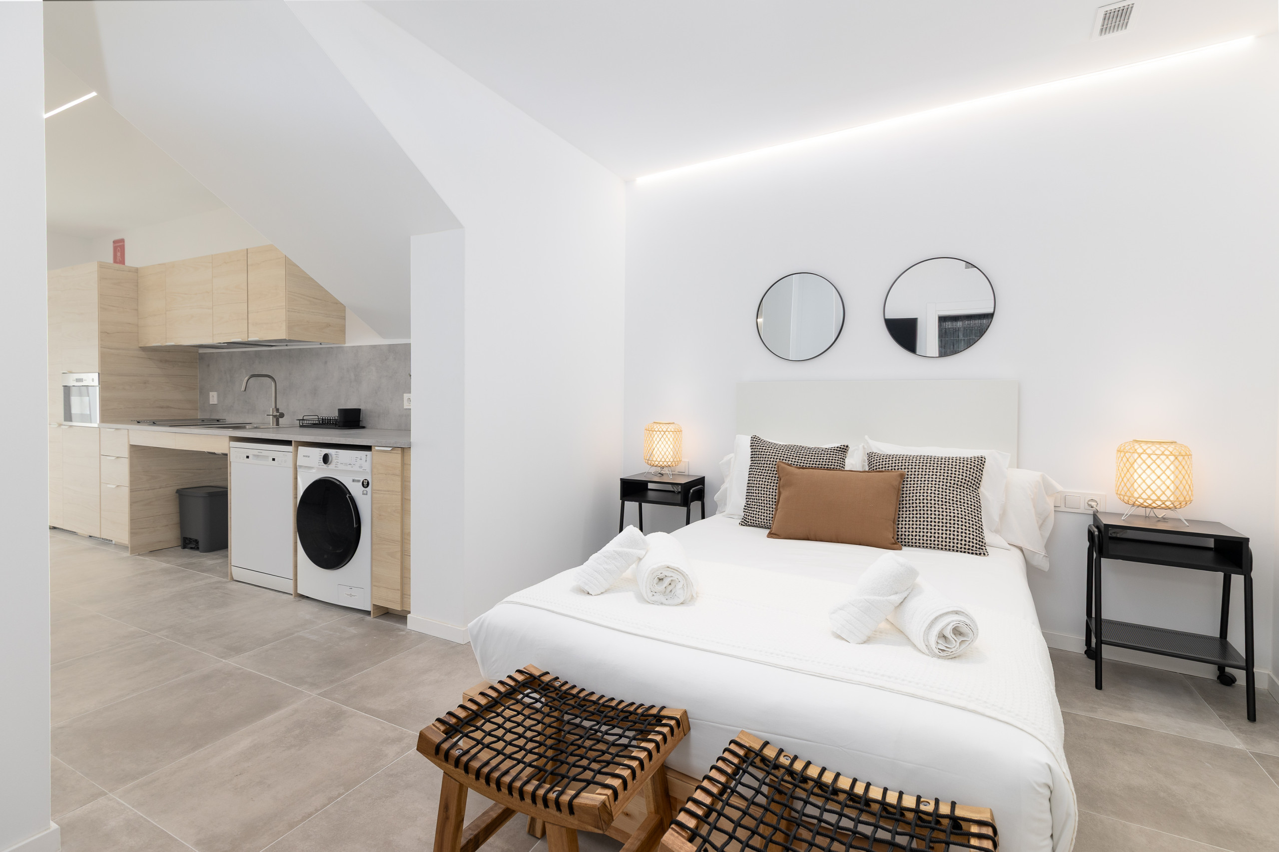 Modern and bright studio located in the urban area of Cabanyal. It is situated in a perfectly connected area, ideal for those who want to enjoy the Malvarrosa beach (about 2 km away) as well as for those who need to move quickly around the city or its surroundings thanks to the proximity of the train station and metro. The accommodation combines the essence of the fishing neighbourhood with a complete and current equipment.
