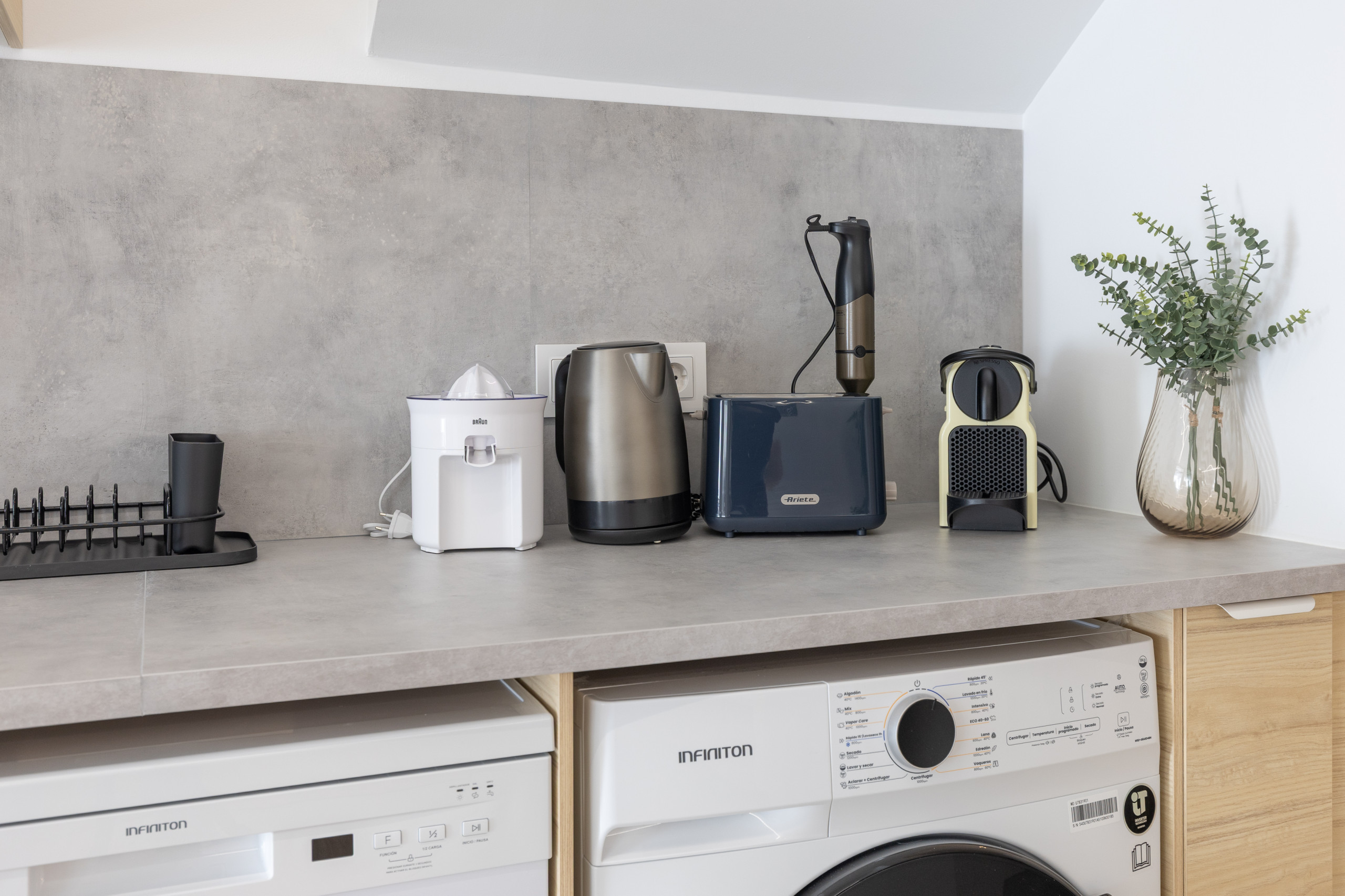- Practical fully equipped kitchen, with dishwasher, washer-dryer, microwave-oven, ceramic hob, refrigerator/freezer, Nespresso coffee machine, toaster, tea kettle...