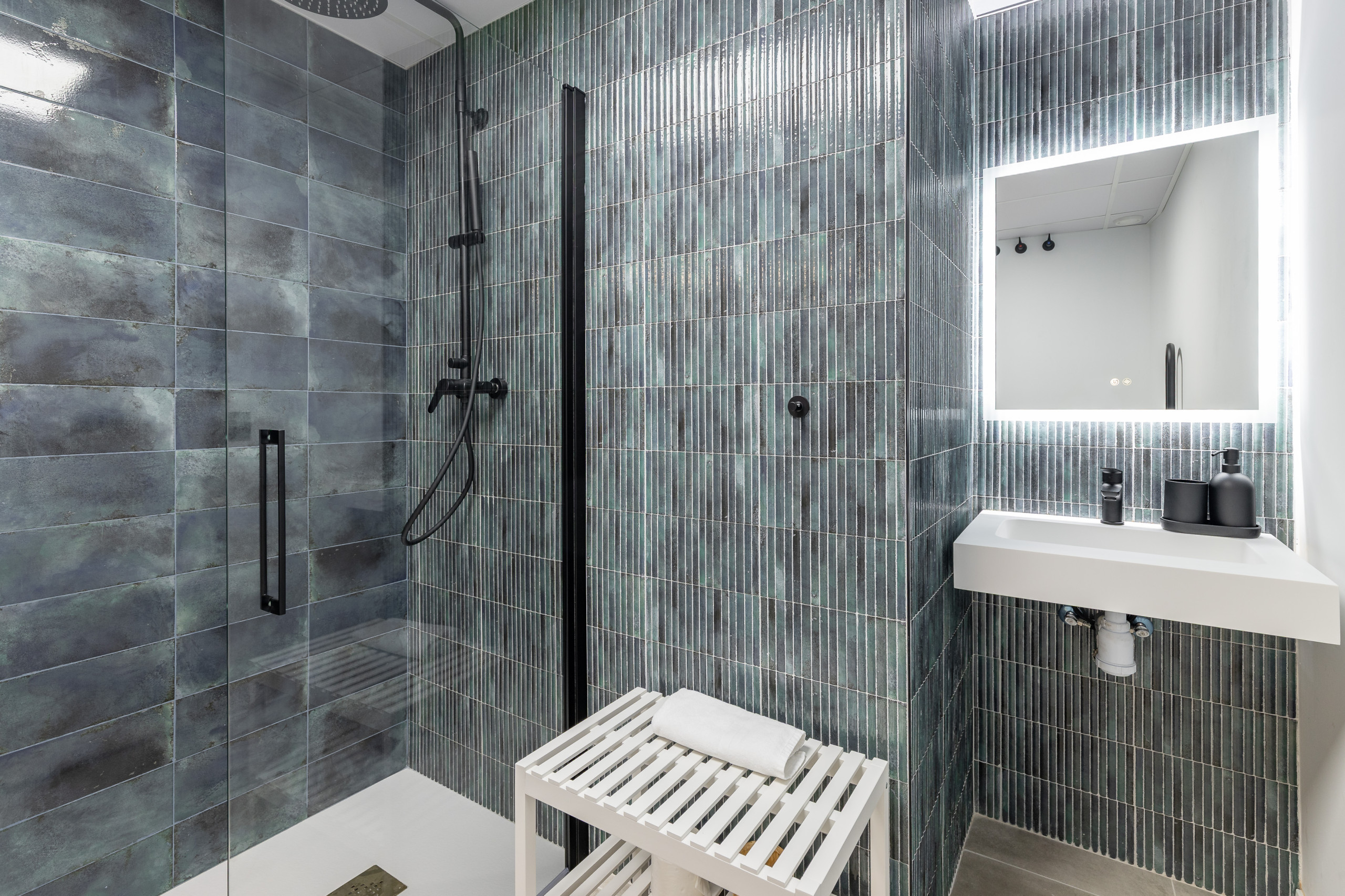 - Bathroom: Equipped with shower, washbasin, mirror and hairdryer.