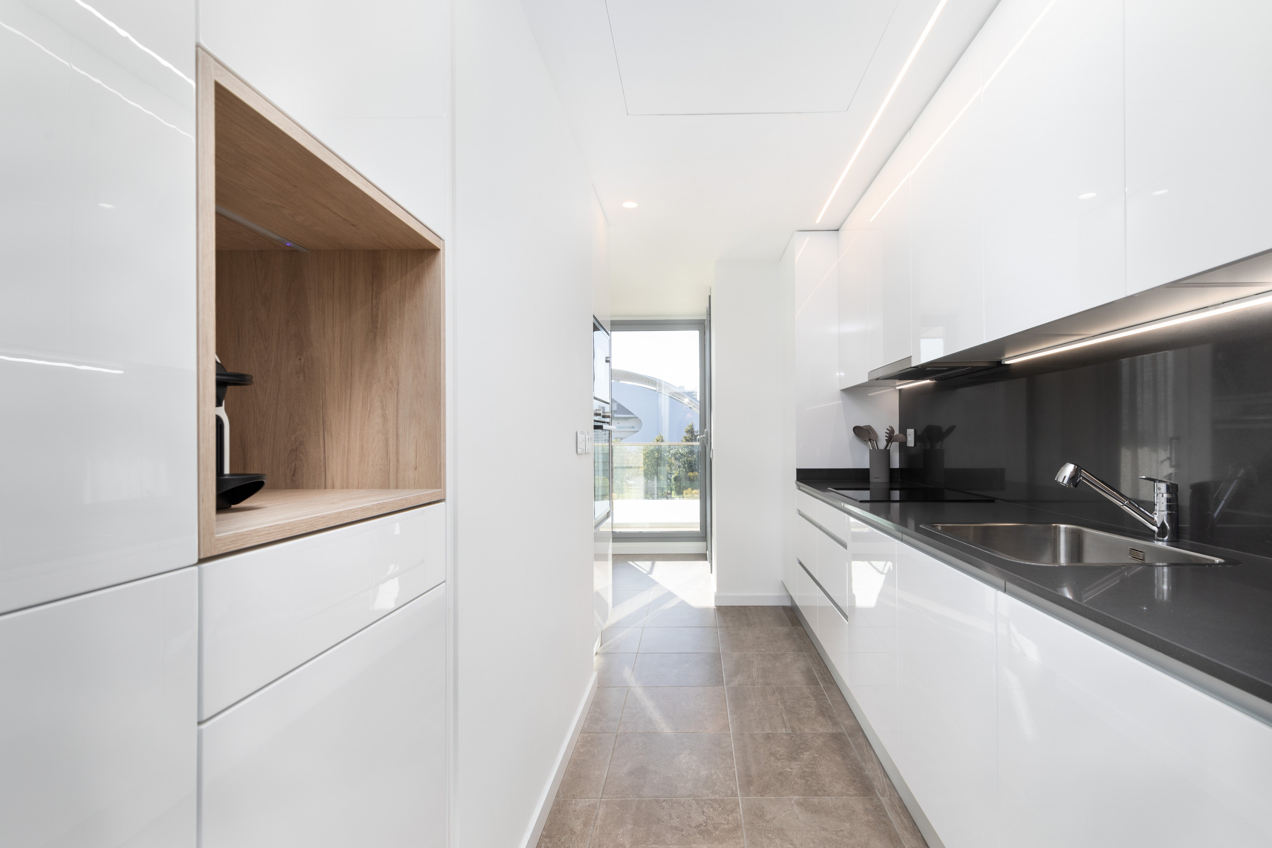 - Cuisine moderne avec petite galerie entièrement équipée, avec lave-vaisselle, sèche-linge, machine à laver, micro-ondes, four, réfrigérateur/congélateur, machine à café Nespresso, presse-agrumes, mixeur...